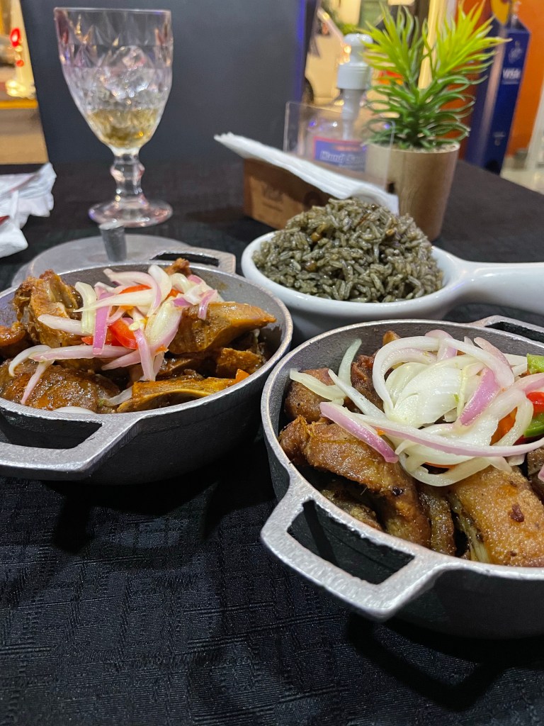 Lucky to also try Haitian food (picture is shown below) fr Maison Kreyòle restaurant boutique. Tastey pork & goat with traditional black rice + sides.