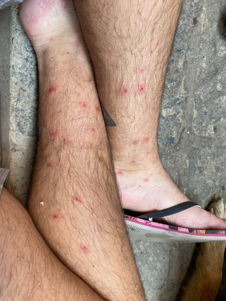 Tim and I were once again, exhausted. Each day was creating a compound effect. Again, we have never trekked before. Once the trail ended and the city was near. We felt like zombies. It didn’t help that the city was all incline too. We continued to move slow. We got cranky, we felt icky from the sand flies & blood splats on our arms. Tim got blisters + a knot in his trap/shoulder. My strained knee worsens later in the day. All this caused our brains to be scattered and it took more time to find our hostel.