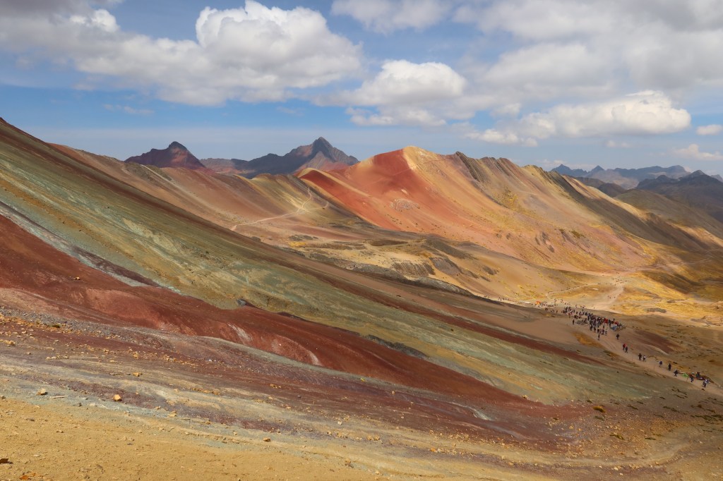 Rainbow Mountain, originally called Vinicunca, is Peru’s second most famous hike (after Machu Picchu). The elevation is higher than the previous Salkantay pass, Rainbow is @ 5,200 meters/17,100 ft. Thankfully, this hike is much shorter. The distance is about 7 km/4.35 miles. It starts of as a easy incline, transcends to a medium difficulty, then very hard.