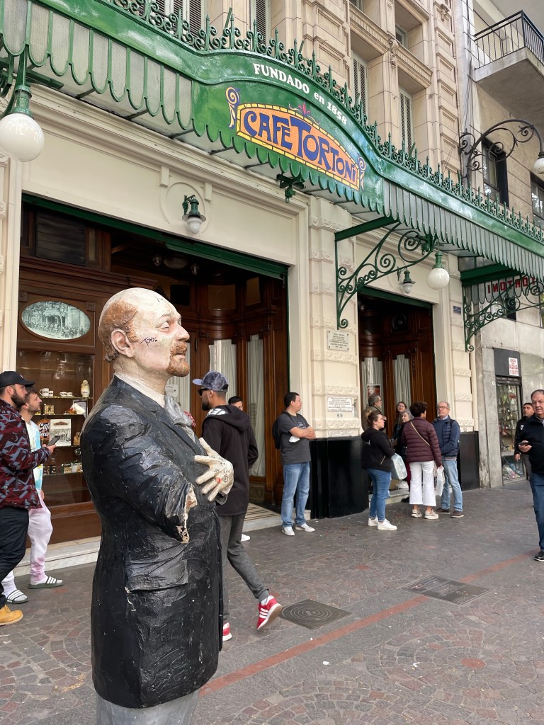 Cafe Tortoni is often visited and was very close to the hostel. Maybe just 2 or 3 blocks away. It opened in 1858. There was a line out the door for something that wasn’t too extravagant. I’m thinking it was more for the history and popularity. A tango dancer, Carlos Gardel, would come to the cafe. This spot had become a meet up spot for famous scholars and artists throughout its lifetime.