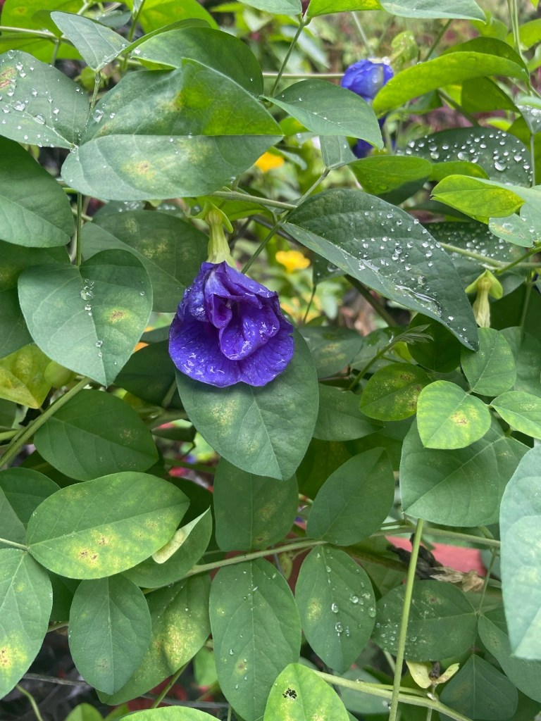 Butterfly pea grown in Nueva Vizcaya, Philippines. My aunt and uncles like to place it in hot water for tea or soak in clear alcohol. I loved the beautiful dark blue dye it created.