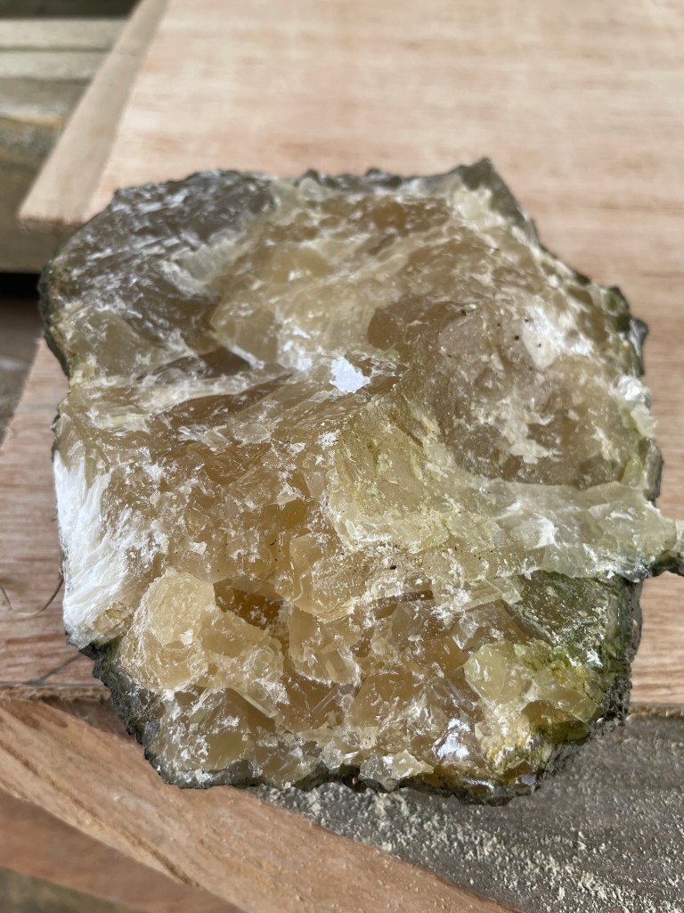 My auntie whom owns farm land was fun visit too! It was nice to enjoy fresh eggplants, fresh coconut (normally I like coconut but the freshness made it sweet and delicious), peppers and sight see. In addition to her backyard, a crystal known as honey calcite, is continuously growing! This crystal was hammered out of the main platform.