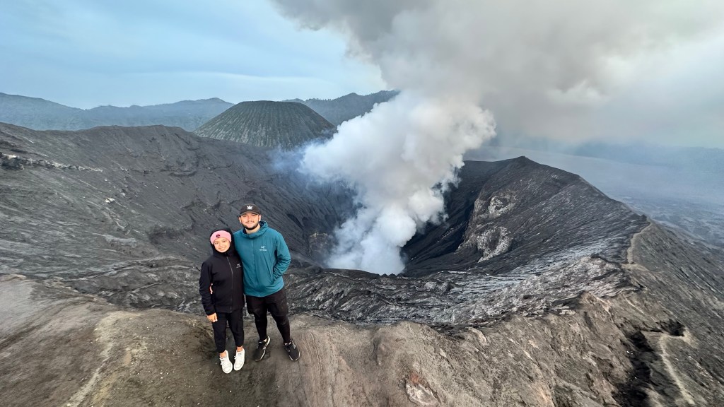 The second volcano hike in Jakarta is called Mt Bravo. Tim, myself and two others were able to pass with no fee. Online you can find secret pathways to cross without entry fee. Before sunrise, we caught glimpses of the fire. Not that my iPhone 12 Pro could catch much. But what was before our eyes- was crazy cool.. we all watched sunrise. The morning fog that lightly brushed over the land was beautiful. It was unevenly dispersed, it felt calm, artistic, and blissful. Thinking back on it now, makes me more excited to see volcano hikes that I hope to see in Central America.