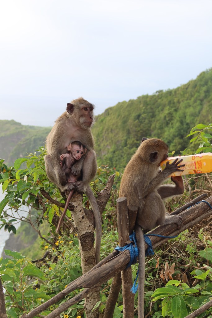 Nusa Penida – A beautiful island that is widely known for the Kelingking Beach. Before the parking lot, there is a small fee for entry. Not sure if it’s a legit fee required by the government. It felt like a fee charged by random locals and that feeling was shared by multiple other travelers.. I could be wrong though! After parking your motorcycle, there are about 4-6 gift shops. At the viewpoint near the start of the stairway, the excitement begins with the monkeys who jump along the trees and walkways. People would feed them chips, ice cream, and drinks. Anything really to be entertained. From there if you’re hungry, you are stuck between 3 small restaurants. If you decide to pass and hike down, there are steep and uneven steps. At the bottom, the waves were very powerful. Warning high tides** ⚠️ I am a weak swimmer myself so I watched many others tumble and somersault within the waves. The return requires some upper body strength due to the climb of ropes and high slopes.