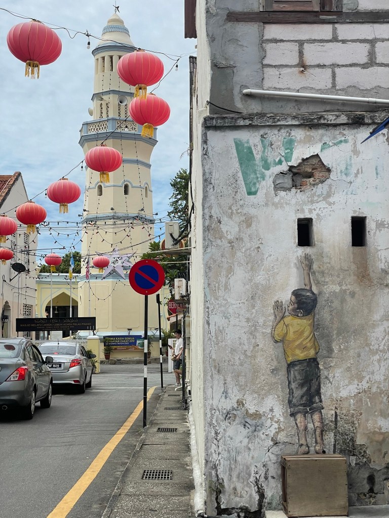 Malaysia had a beautiful goodbye message from the universe. This the morning we left. Such a clear look that is quite the opposite from the night before. This is the street our hostel was on and we walked on each day during our visit in Penang.