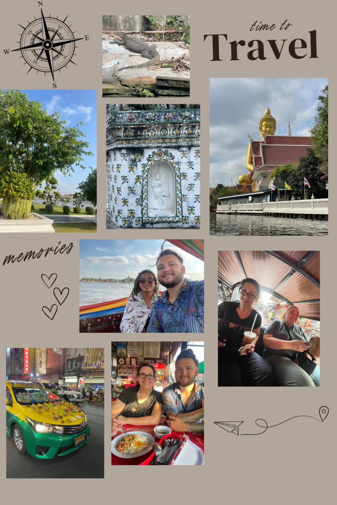 Once Tim and I landed, we waited for Tara’s or Michelle’s text. I remember it clearly. There was a sign showing “Meeting Point.” Tim thought he was funny and kept repeating “Meet up Spot/Meeting Point.” Soon enough we all were united! It was about 12:00 or 1:00 PM. We hopped onto the car Grab and got dropped off in DT Bangkok. We tried to get dropped off nearest to our reserved hostel. It was hot. The sun was out, the streets were busy. All four of us had our backpacks. We began on the busy main street and through narrow pathways to find this hostel. Only to end up with our hostel temporarily shut down to due safety conditions.