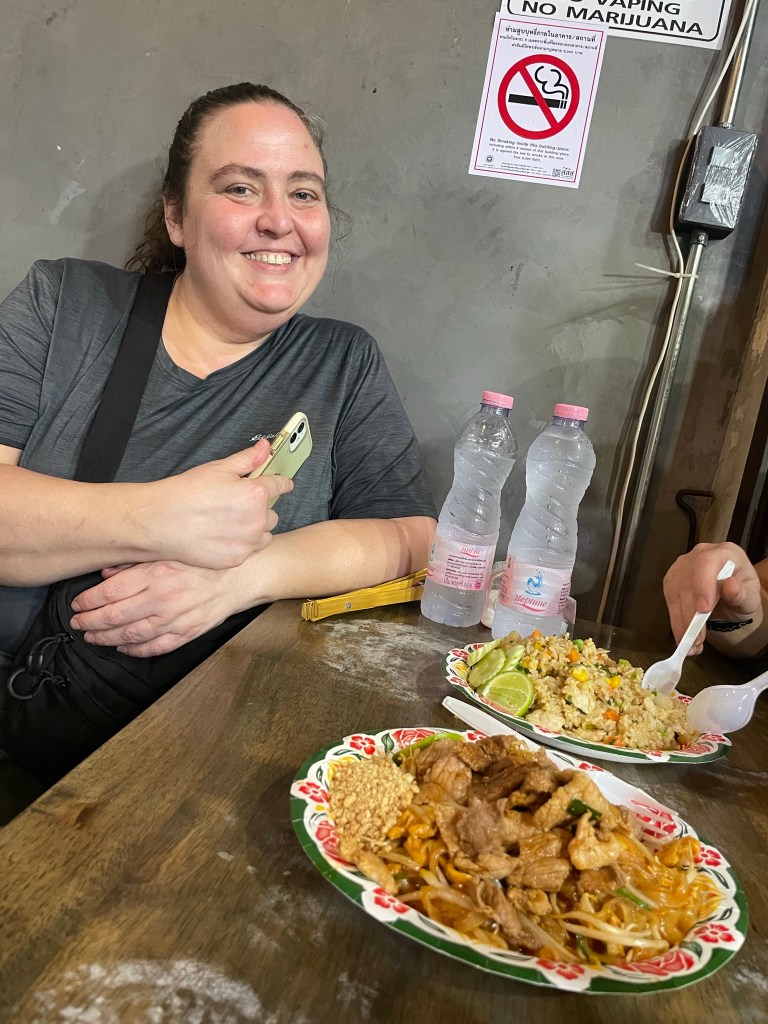 After the boat, we shopped a bit more. It’s fun to see what different items gift shops offer. Majority of items are the same and you star to notice a pattern. However, it is fun when you find something different. Once we were back in our hostel area, Michelle experienced the fish tank on her feet. After some midday rest we ventured off into dinner plans. We ate at a nice restaurant for dim sum that was constantly busy (great sign!) And having more food.. when we were out exploring. A group favorite was Pad Thai out at Khaosan Road.